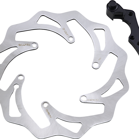Caracteristicas: 270mm solid-mount brake rotor Kit includes 6061-T6 aluminum relocating bracket Designed for track, trail, and everyday use Keeps the brake system cooler by allowing air to pass over every point of a brake pad surface Best friction surface of any stainless steel brake rotor Drastically increases lever feel, modulation and brake torque