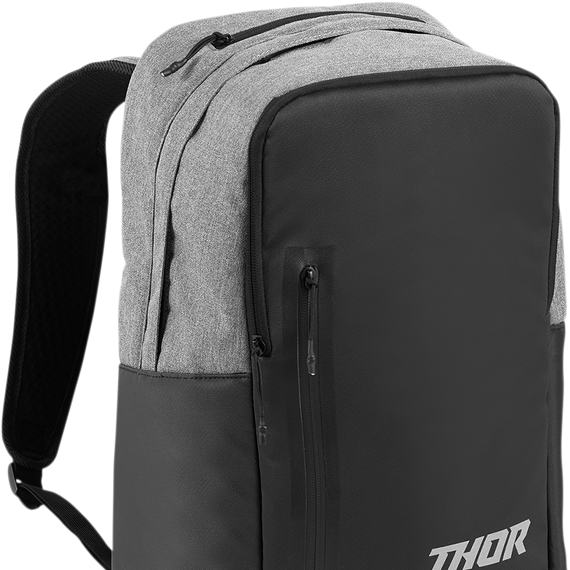Caracteristicas: Dimensions: 19”L x 11”W x 7”D 1200D Ballistic polyester/600D with PU coating throughout THOR reflective logo Reverse face YKK® water-resistant zip on front Internal mesh pocket Mint green zipper pulls Micro fleece lined glasses/media pocket Large main compartment with padded laptop sleeve