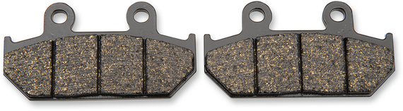 Caracteristicas: Asbestos and nickel-free Uses an organic base material for outstanding friction along with a soft, non-aggressive metal that allows the pad to glide  on the disc, providing better control Semi-metallic compound - great for OE replacement Best performance at lower temperatures Offers an aggressive response and is easily identified by the black backing plate