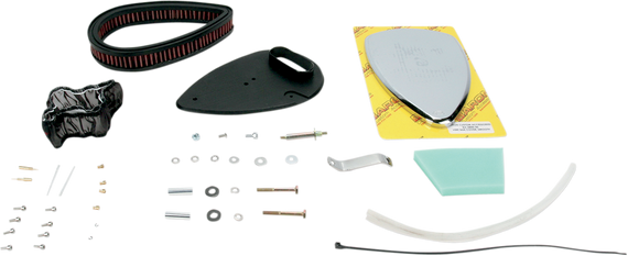 Caracteristicas: Slim 1-1/2" hi-flow reusable filter and specially designed back plate dynamically increases air flow and velocity Complete with breather kit, mounting hardware and micron-fabric raincoat for wet-weather riding Flow-bench and dyno-designed for substantially increased horsepower and torque Innovative styling enhances and accentuates your "V" Twin engine Easy-to-follow instructions included for a do-it-yourself install Set-back, thin-line design does not interfere with rider's leg Maximizes overall performance and fuel efficiency Made in the U.S.A.