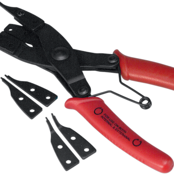 Caracteristicas: Economical pliers easily work with both inside and outside opening snap rings or clips Includes three extra sets of tips: one additional straight tip and two offset or angle tips