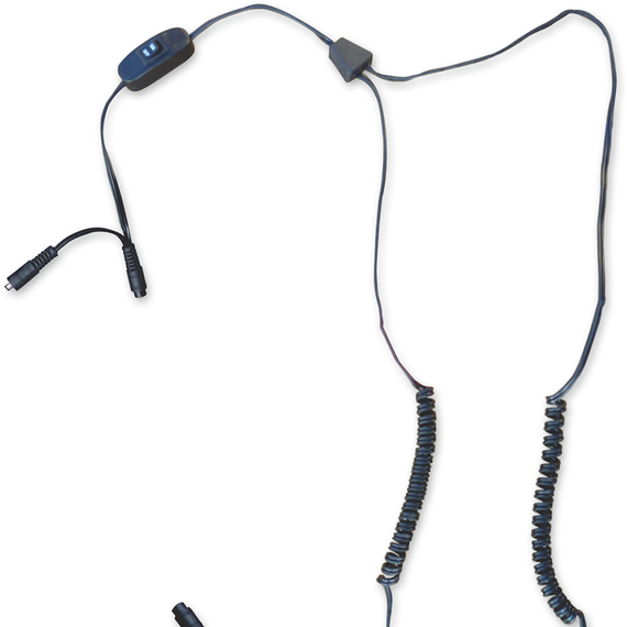 Caracteristicas: Used to run Gears foot warmers or heated socks on their own, or along with one other heated clothing item Comes with an ON/OFF switch in the wiring harness Sufficient cord length allows user to route harness through the pant loops and drop them down toward the foot warmers or socks End of cord has a male coax plug that connects to the power source and a female coax plug that can be used to connect other heated clothing or gloves/glove liners, along with their required cable (if intending to use with upper clothing along with the foot warmer/socks on the same circuit) DC connector plugs are 5.5mm in size