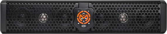 Caracteristicas: Integrated amplifier designed specifically for powersports applications that can deliver up to 30% more SPL than standard amplifier technology Features a marine-grade chassis made of heavy-duty extruded aluminum and a perforated steel grille, offering maximum protection from the elements, bumps and impacts Along with Bluetooth® audio streaming, also includes a 3.5mm stereo auxiliary input jack for running audio from a portable media player or headphone output jack Memory Sync feature will remember the most recently connected device and will automatically re-connect to it when powered up with the device in range Features large, center-mounted controls for Power, Track Forward/Back, Volume +/-, Play/Pause and a Map Light button for illuminating the built-in LED map light Compatible with surface or roll cage mountingwith included hardware for both Includes a 77” harness for powering the sound bar and a 17” input/output harness Marine-grade protection with IP68 weatherproof rating