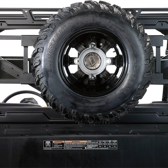 Caracteristicas: Works equally well attached to the frame of the UTV top or to the back of the cab Installs in seconds with no drilling or bolting required The spare tire is held in place with two mounting studs and secured with easy-grip, fluted wing-knobs The unit fits UTVs with frames (roll bars) from 50-64" wide
