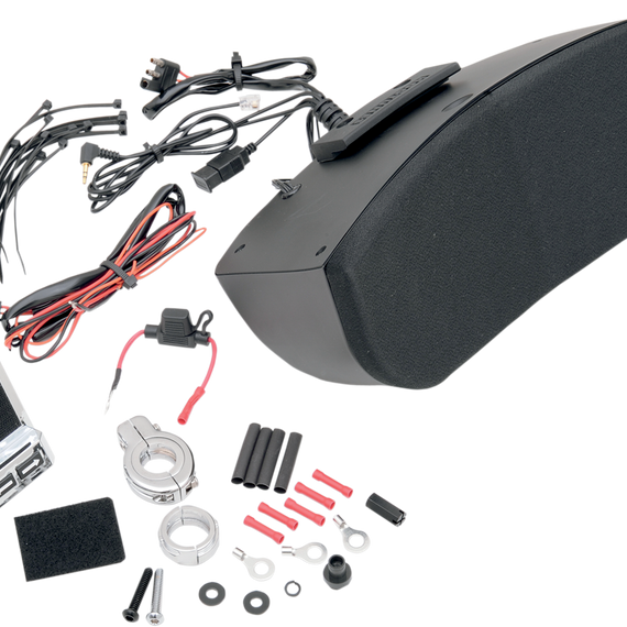 Caracteristicas: Includes custom "pod" with dual 4.25" speaker, 50 watt amp with USB charge port (1A max), audio perch with built-in volume control, a mini 3.5mm (1/8") stereo audio cable and all required hardware and wiring Measures approximately 11-11/16" W x 5-1/4" T x 5-1/2" D Kit may not fit if gauges are riser-mounted