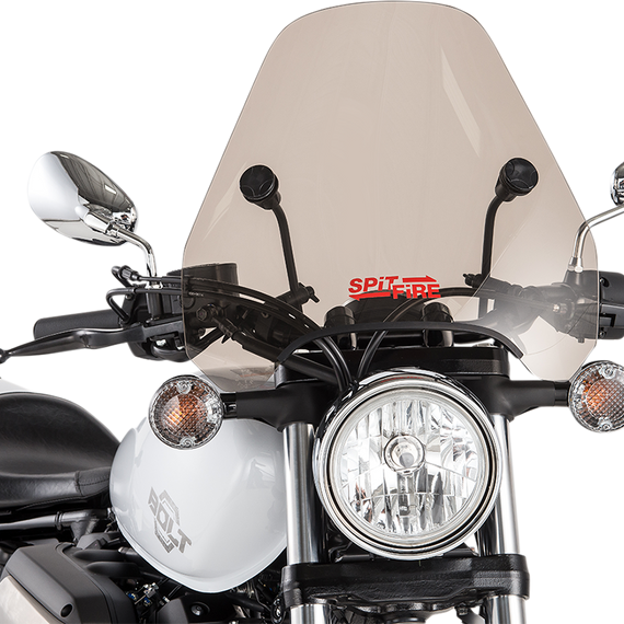 Caracteristicas: Great protection and devastating style come together in the Spitfire Sport Shield Constructed of 1/8" acrylic with red graphics Fully adjustable; mounts/dismounts in seconds; fits both 7/8" and 1" handlebars For round or rectangular headlights Made in the U.S.A.