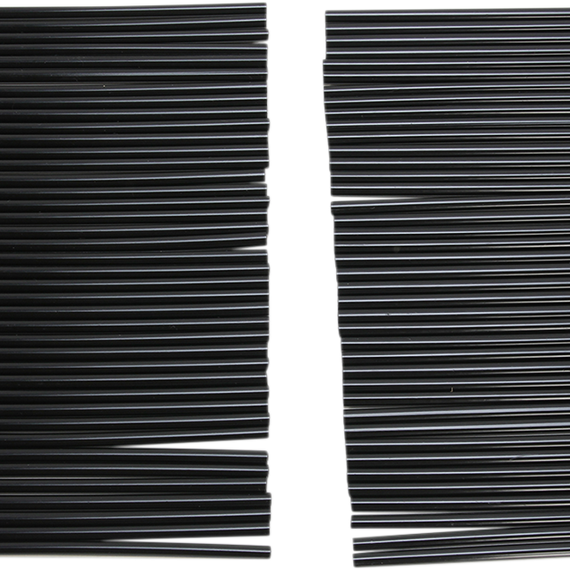 Caracteristicas: Includes 40 81/2"-long pieces for the front wheel and 40 72/3"-long pieces for the rear wheel 80-piece set fits 18" to 21" wheels; sleeves can be cut for smaller wheels