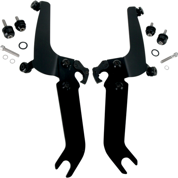 Caracteristicas: Gone are the days of fumbling with tools to remove your windshield The revolutionary No-Tool Trigger-Lock hardware features an innovative system that allows you to quickly and easily remove your windshields without the use of any tools A pair of latches lock the windshield down until the spring loaded "trigger locks" are intentionally disengaged, allowing the rider to remove the windshield Hardware is fully adjustable to achieve just the right windshield angle Kits are custom-fit to each style of bike for a truly no-hassle installation Made in the U.S.A.