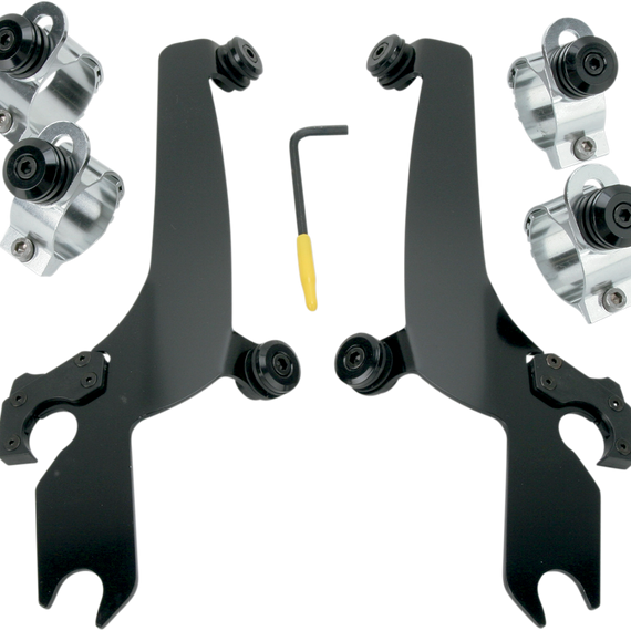 Caracteristicas: Gone are the days of fumbling with tools to remove your windshield The revolutionary No-Tool Trigger-Lock hardware features an innovative system that allows you to quickly and easily remove your windshields without the use of any tools A pair of latches lock the windshield down until the spring loaded "trigger locks" are intentionally disengaged, allowing the rider to remove the windshield Hardware is fully adjustable to achieve just the right windshield angle Kits are custom-fit to each style of bike for a truly no-hassle installation Made in the U.S.A.