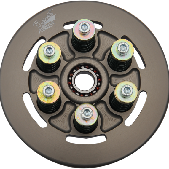 Caracteristicas: Converts the stock diaphragm spring to six heavy-duty coil springs and provides a more progressive linear engagement Included is a CNC precision-machined billet aluminum pressure plate, six heavy-duty coil springs, spring cups and stainless screws This kit simply replaces the stuck clutch spring/pressure plate assembly - no modifications required