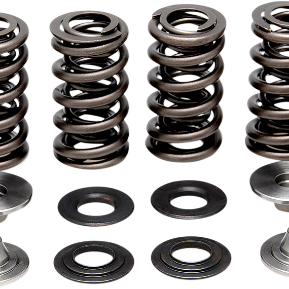 Caracteristicas: Spring kit is designed with increased spring rates and high lift compatibility compared to the stock springs Compatible with boosted or turbocharged applications CNC-machined titanium retainers and Cr-Si dual springs provide valvetrain control at high rpms with high-performance camshaft capability Kit includes 12 titanium retainers, 12 CrSi Valve Springs and 12 H.T. Steel Basewashers