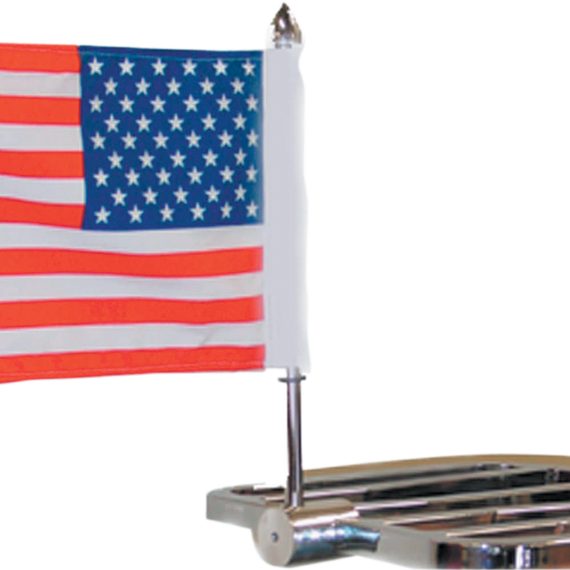Caracteristicas: Polished 304 stainless steel mount bolts directly to the square 5/8" sport racks on Softail, Sportster and Dyna Glide Mount, as well as pole, can be easily detached via a small setscrew Includes an American flag Other flags also available; sold separately Made in the U.S.A.