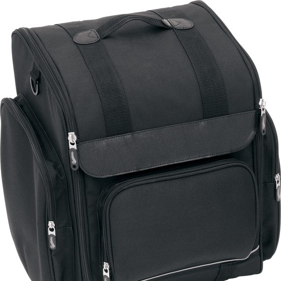 • Fully adjustable mounting system includes two pull-straps; mount onto sissy bar, luggage rack or back seat