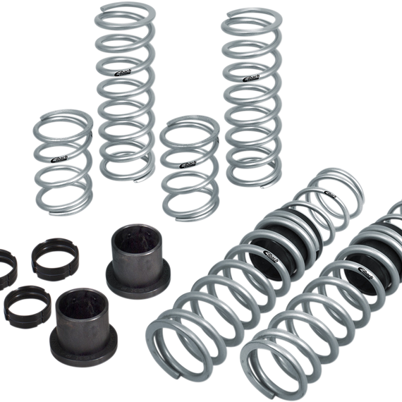 Caracteristicas: All systems include springs, sliders, stop rings and complete setup instructions Race-proven durability and quality Engineered and tested by drivers Designed for 2- and 4-seat vehicles Adjustable shock lockout collars included to allow fine-tuning of the transition point of the dual-spring setup Improves turn-in response and better power hookup out of the turns Smoother ride over rough terrain Stiffer spring rates prevent bottoming in the G-outs Made in the U.S.A.