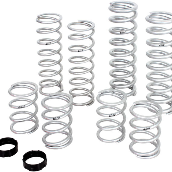 Caracteristicas: All systems include springs, sliders, stop rings and complete setup instructions Race-proven durability and quality Engineered and tested by drivers For 2- and 4-seat vehicles with higher loads and multiple passengers More aggressive spring rates keep the machine balanced Adjustable shock lockout collars included to allow fine-tuning of the transition point of the dual-spring setup Improves turn-in response and better power hookup out of the turns Smoother ride over rough terrain Stiffer spring rates prevent bottoming in the G-outs Made in the U.S.A.
