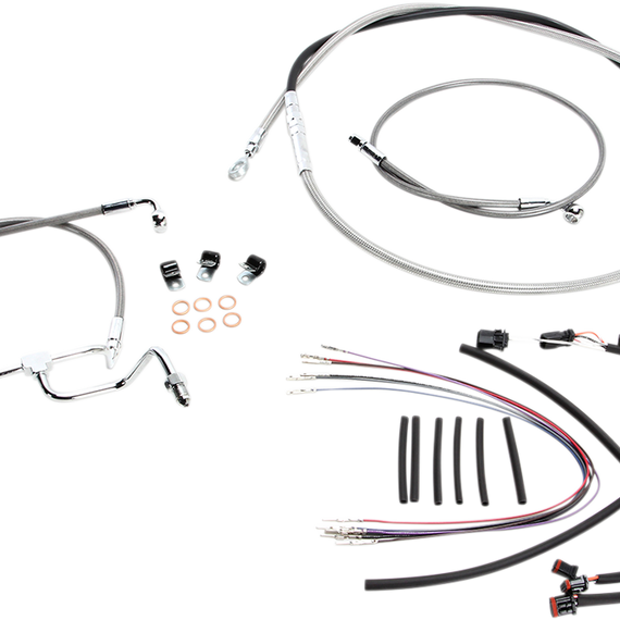 • Kits include throttle and idle cables or throttle-by-wire extensions, clutch cable or XR hydraulic clutch line, XR brake lines, copper crush washers, hardware, turn signal and switch wiring extensions