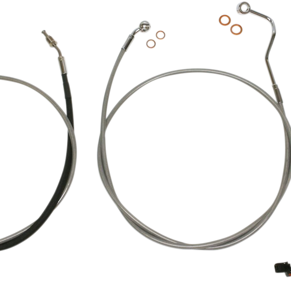 Caracteristicas: Magnum XR Handlebar Installation Kits offer a great fit and excellent quality at an economical price Kit features highly polished, chrome plated fittings All cables are a low effort, high efficiency design that meets or exceeds all OE specifications for fitment, construction, endurance Magnum XR Brake Lines use an enhanced construction of heavy gauge stainless steel embedded in tough abrasion resistant nylon outer jacket for superior durability and extreme braking response for safe riding The coating on cables and brake lines offers exceptional protection for paint or chrome Kits that include manifolds use an all brazed construction to ensure optimal OE fitment and appearance Manifolds use -3 AN connections for an easy installation Kits include throttle and idle cables or throttle-by-wire extensions, clutch cable or XR hydraulic clutch line, XR brake lines, copper crush washers, hardware, turn signal and switch wiring extensions Kits are based on using ape hanger style handlebars and 2" risers.