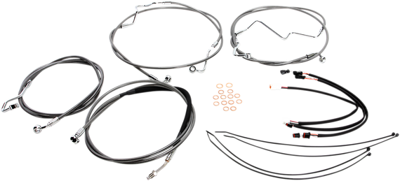 • Kits include throttle and idle cables or throttle-by-wire extensions, clutch cable or XR hydraulic clutch line, XR brake lines, copper crush washers, hardware, turn signal and switch wiring extensions