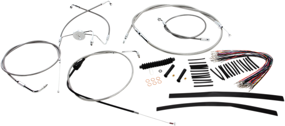 Caracteristicas: Magnum XR Handlebar Installation Kits offer a great fit and excellent quality at an economical price Kit features highly polished, chrome plated fittings All cables are a low effort, high efficiency design that meets or exceeds all OE specifications for fitment, construction, endurance Magnum XR Brake Lines use an enhanced construction of heavy gauge stainless steel embedded in tough abrasion resistant nylon outer jacket for superior durability and extreme braking response for safe riding The coating on cables and brake lines offers exceptional protection for paint or chrome Kits that include manifolds use an all brazed construction to ensure optimal OE fitment and appearance Manifolds use -3 AN connections for an easy installation Kits include throttle and idle cables or throttle-by-wire extensions, clutch cable or XR hydraulic clutch line, XR brake lines, copper crush washers, hardware, turn signal and switch wiring extensions Kits are based on using ape hanger style handlebars and 2" risers.