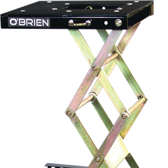 Caracteristicas: Easily lifts dirt bikes from 50cc - 650cc Large top surface is coated with thick, durable non-slip material and has a drain hole (7" x 4") Securing system keeps bike on the stand with "J-hooks" that tighten down the footpegs Adjustable feet accommodate bikes of different ground clearance Locking bar relieves hydraulic jack and prevents bike from unintentional lowering at 16.25", 22.75", 28" and 32" Lowers by turning hydraulic release valve knob Down-position height is 12-3/4"