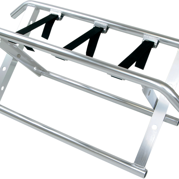 Caracteristicas: Elevates Personal Watercraft (PWC) off shoreline, preventing rocks, soil and debris from washing into pump Helps keep PWC from floating away due to wave action and stabilize it for maintenance Folding scissor design is very compact for easy transportation and storage, folds flat to 38" X 5" X 20" Strong 1-1/2” nylon straps incorporated with heavy duty buckles for extra strength