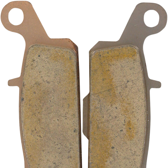 Caracteristicas: DP Brakes Brake Pads are designed with sintered metal compounds to give your ATV high-tech performance in all conditions Pads have a quick break-in period so you get maximum performance fast DP Brakes design and materials ensure consistent, hard stops and fade-free performance Sintered metal compounds outlast more conventional organic or aramid fiber pads Use DP Brakes Rotors in conjunction with DP Brakes Brake Pads for the ultimate in braking performance GG-friction rated and made with DP Brakes' proven sintered-metal material Gray-colored aluminum oxide-based ceramic material on rear of back plate keeps heat away from caliper piston and fluid in extreme conditions for fade-free performance Pad compound gives equal performance in wet or dry conditions The ideal replacement pad where durability is the prime requirement TUV/KBA approved to EEC braking regulation 13/05 Bright, attractive pegboard packaging
