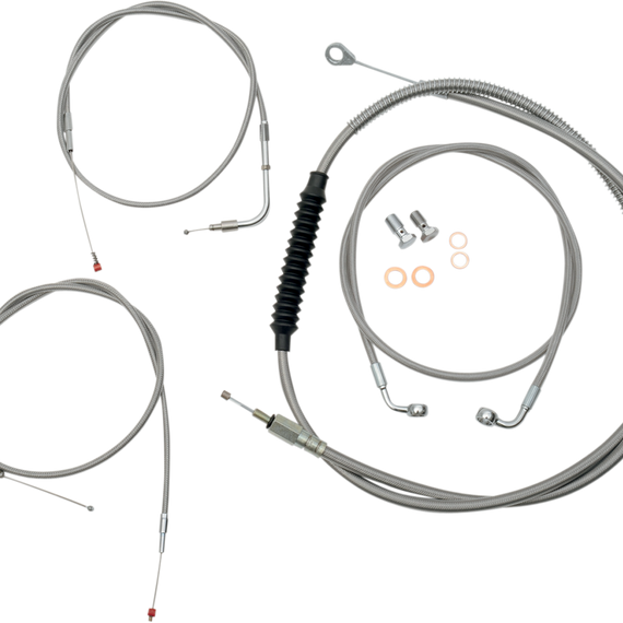 Caracteristicas: Take "cable calculation" headaches out of swapping handlebars Standard kits include the correct length brake/clutch lines and wire extensions to complete a handlebar swap; electrical wire extensions not included (available separately) Standard kits include clutch line, brake lines, chrome "T" brake line junction, banjo bolts, fittings and copper crush washers Made in the U.S.A. Kits are based on using 2" risers with Ape Hanger handlebars