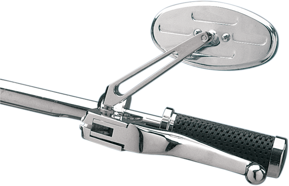 Caracteristicas: "Blue Sapphire" design looks great and helps reduce glare The original Stealth I mirror with a 4-3/4" stem; works great on most pullback and Ape Hanger bars Stems fit all Stealth mirror heads plus most OEM and aftermarket OEM-style mirror heads that thread at the mirror head All feature familiar stud-style mounting common to other mirrors, or we supply chrome socket head Allen bolts for a new style of custom mounting Oval head measures 5" x 2-1/2"; right- or left-side installation Mirror head screws and pivots are stainless steel Mount on 1999-2020 H-D clutch or brake lever housings and most custom mounting applications