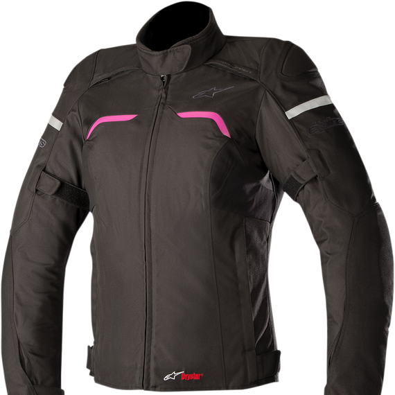 Caracteristicas: Specifically designed and constructed for an optimized female fit Clean-style sport jacket Alpinestars Bio Armor protectors at the shoulders and elbows New GP Lite shoulder protectors feature over-molded advanced Thermoplastic Polyurethane (TPU) guards layered under the outer fabric Chest and sleeve fit adjusters, volume adjusters on sleeves Removable long-sleeve thermal liner Waterproof, breathable Drystar™ membrane full liner with taped seams Wrist hook-and-loop closure and adjustment Multiple ventilation zippers Large stretch panel on top back, sides and arms Two zippered side pockets Chest and back padding compartments with Polyethylene (PE) padding (Alpinestars Nucleon chest and back pads available separately) Internal waist connection zipper for attachment to Alpinestars riding pants Premium YKK front zipper closure Integrated soft-edge collar construction Hook-and-loop collar adjustment and closure Pre-curved sleeves for increased comfort in the riding position
