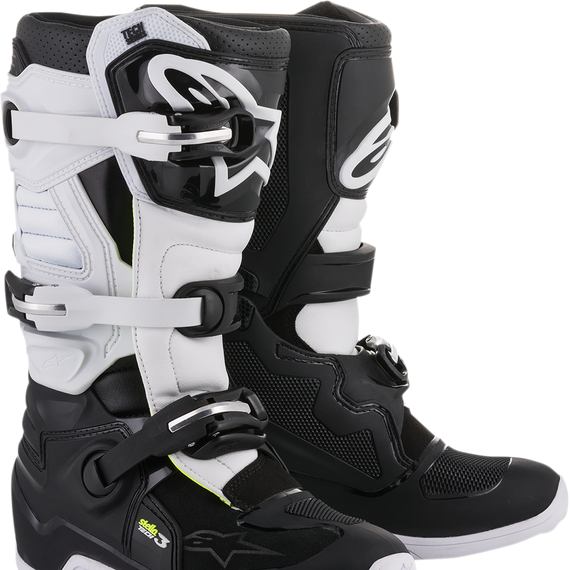 Caracteristicas: Specifically designed for women with lower overall height to suit female riders Calf circumference is designed to suit the shape of a woman's lower leg Ankle padding specifically designed to follow the more aggressive tapering of a woman's ankles High-quality external/internal construction, durable full-grain leather upper, poly fabric lining and open cell foam The inner, medial side of the boot is specifically designed for control and features a thick and wide stamped suede upper panel and PU protective lower section designed for excellent contact and grip against the bike while guarding against heat Patented ankle brace protector Thermoplastic Polyurethane (TPU) protectors on the shin, side and toe box area, calf, heel and outer ankle for a high level of impact- and abrasion-resistance and to absorb shocks Anatomically designed footbed is raised at the heel to move the foot upwards for optimal fit around the ankle and calf Inside protector specifically designed to provide greater flexibility in the metatarsal area, assisting back and forth flexibility Three-stage, softer instep/ankle flex zone for maximum comfort, control and support Exclusive dual-compound rubber sole provides improved grip and superior durability in high-wear areas; sole features a contoured stamped steel shank Closure structure features three low-profile aluminum buckles with memory, self-alignment, micro adjustments and a quick-release/locking system; top and bottom reverse-closure design provides superior impact avoidance and optimal fit