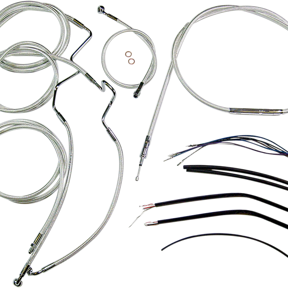 • Kits include throttle and idle cables of throttle-by-wire extensions, clutch cable or hydraulic clutch line, brake lines, copper crush washers, hardware, and any necessary switch wiring of turn signal extension