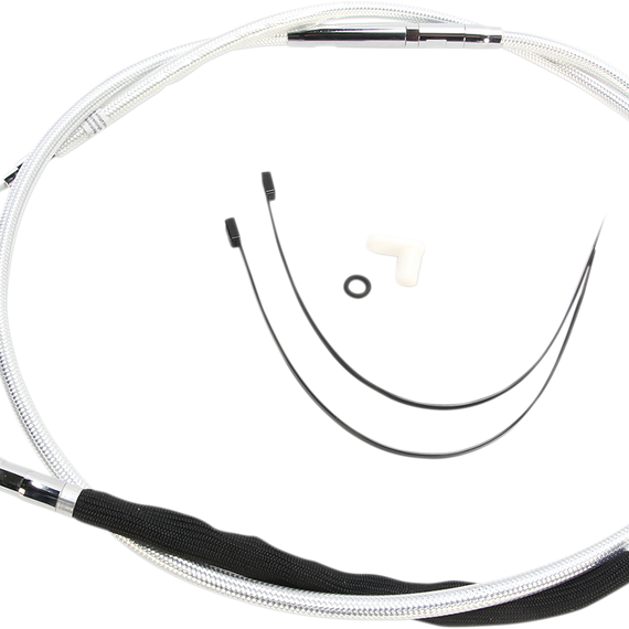 Caracteristicas: Sterling Chromite® II uses patented technology to look like chrome Braid color and weave match on all Magnum control cables and brake lines Coated with a non-yellowing, crystal clear FEP fluoropolymer outer jacket for exceptional protection against scuffing paint or chrome Low-effort, high-efficiency cable design meets or exceeds all OE specifications for fitment, construction, and endurance All fittings are polished and chrome plated Attractive adjuster with integrated water resistant seals does not require a boot Rubber seal in transmission fitting eliminates fluid leaks All cables are factory lubricated for smooth, consistent, long-lasting operation Assembled in the U.S.A. Late style cables are measured with the adjuster completely collapsed