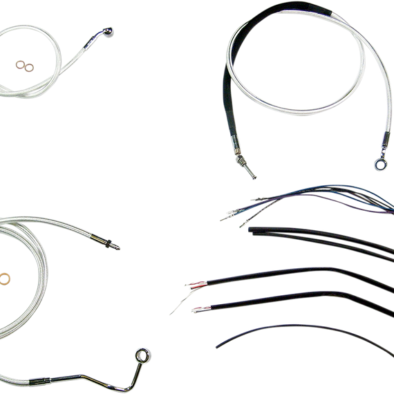 • Kits include throttle and idle cables of throttle-by-wire extensions, clutch cable or hydraulic clutch line, brake lines, copper crush washers, hardware, and any necessary switch wiring of turn signal extension