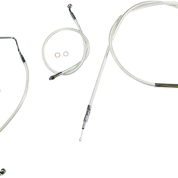 • Kits include throttle and idle cables of throttle-by-wire extensions, clutch cable or hydraulic clutch line, brake lines, copper crush washers, hardware, and any necessary switch wiring of turn signal extension