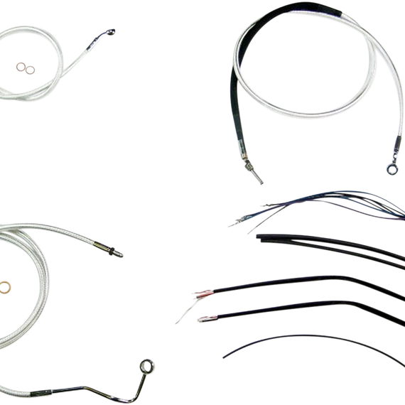 • Kits include throttle and idle cables of throttle-by-wire extensions, clutch cable or hydraulic clutch line, brake lines, copper crush washers, hardware, and any necessary switch wiring of turn signal extension