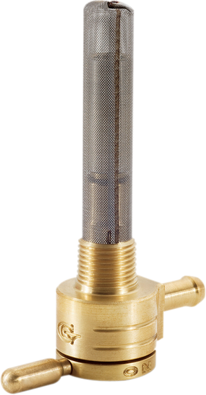 Caracteristicas: 90° movement between each detent ensures positive transition when riding Manufactured from 360 brass and stainless steel ball-bearings and components Features detents for quick, effortless switching from "On" to "Reserve" to "Off" Stainless steel internal ball bearings provide virtually friction-free petcock handle motion Valve position firmly held in place and unaffected by vibration Can be modified to fit custom tanks and/or be set to determine amount of reserve gas available with any custom gas tank Made in the U.S.A.