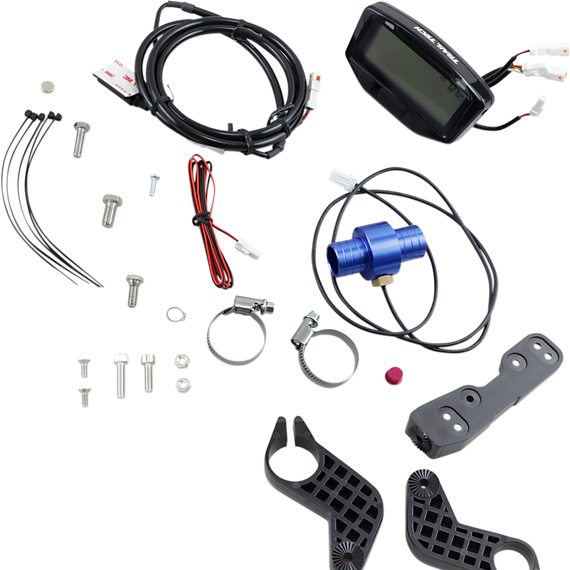 Caracteristicas: Speed/Distance/Voltage/Temperature/Clock Speedometer functions: current, average, maximum; selectable MPH/KPH Distance functions: trip, odometer, adjustable distance; selectable mile/kilometer Voltage function: voltage, maximum, minimum Temperature functions: engine temp, ambient temp, max engine temp, temp with LED alerts, model-specific sensors; selectable F/C scale Clock functions: hour meter, stop watch, ride time, accumulated ride time; selectable 12/24 hour display Maintenance: oil reminder, wrench reminder Power input: accepts any power input AC/DC, auto-switch to internal battery, permanent memory (data never lost) Waterproof design with high-intensity LCD white backlight display Optional top-mount gauge mount available separately - See Related Products
