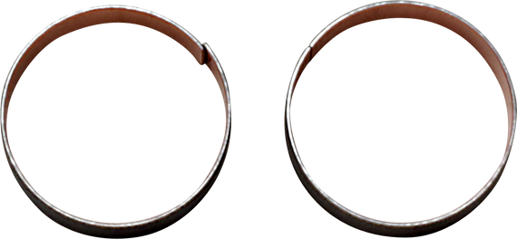 • Inner bushings mount on the inner (chrome) fork tube and have PTFE on the outside of the bushing; outer bushings mount on the outer (aluminum) fork tube and have PTFE on the inside of the bushing