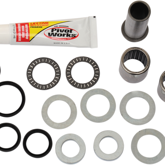 Caracteristicas: Restore handling and suspension control lost due to worn or rusted swingarm components Convenient kit eliminates looking up many part numbers Each kit contains bearings, pins, collars and seals manufactured to OEM specifications for a perfect fit Considerable savings over OEM prices