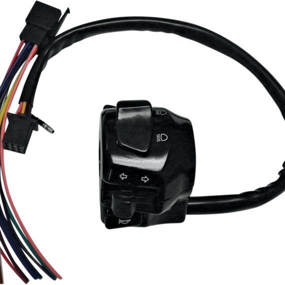 Caracteristicas: All feature turn signal with right-, left- and center-push canceling; headlight with high-low beam; parking setting and horn Fit 7/8" handlebars 25" overall wire length with 9-pin connector
