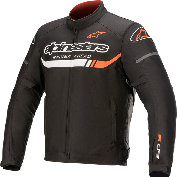 Caracteristicas: Multi-panel advanced poly-fabric shell construction with abrasion resistant material in strategic areas Zippered air intake for high levels of airflow Hook and loop strap on waist adjustment for an improved riding fit Cuff adjuster for an enhanced fit Two zippered hand pockets for safe storage of small items, plus front inner waterproof pocket Waist connection zipper allows attachment to Alpinestars riding pants Embroidered logos for unique styling Low profile collar construction with 3D textured comfort fabric on inner collar lining Pre-curved sleeve construction reduces fatigue Reflective details Chest pad and back compartments (Alpinestars Level 1 Nucleon chest and Level 2 Nucleon back inserts available as accessory upgrade) Microfiber comfort edge on collar