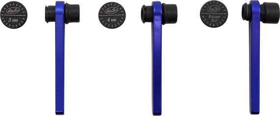 Caracteristicas: Integrated repositionable wrench handle holds the lock nut while the drivers are used to loosen or tighten the valve adjustment screw 8 mm, 9 mm, and 10 mm lock nut sockets; and 3 mm square, 4 mm square, and straight slot type drivers included Allows precise valve lash adjustment without disturbing the setting when the lock nut is fastened Fits most motorcycles and ATVs with screw-type tappet adjustments Knurled knob on adjuster drivers ensure a precise and secure grip