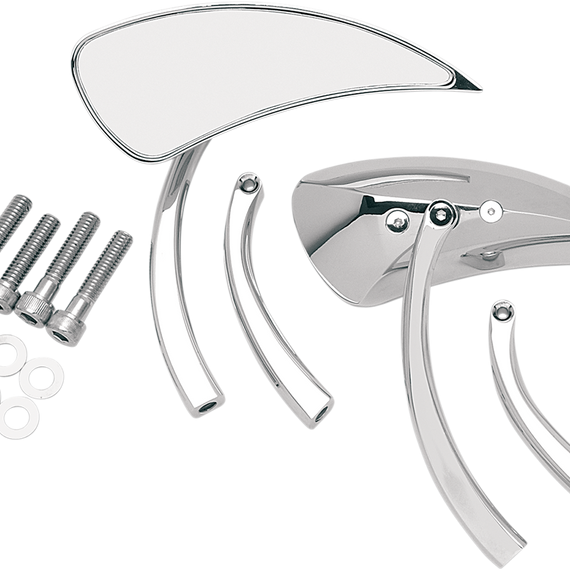 Caracteristicas: Aluminum die-cast construction, polished and chrome-plated Mirror head measures 5-1/2" x 2" Features radius stem style with short stem measuring 3-1/2" and long stem measuring 4-1/2" Include mounting hardware Require mirror adapter