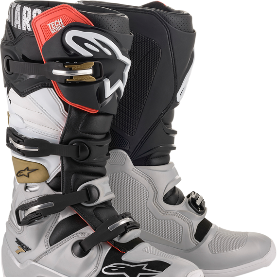 Caracteristicas: Upper is constructed from a light microfiber that provides flexibility and abrasion resistance Thermoplastic Polyurethane (TPU) shin-plate construction and a reinforced hook-and-loop closure offers a comfortable, highly customized fit TPU blade system provides flexibility while helping prevent frontal hyperextension Wide entry aperture and a hook-and-loop upper closure Thermoplastic Rubber (TPR) flap allows for a broad range of calf fit adjustments for comfort and support Single-piece TPU panel with honeycomb sculpturing for maximum grip contact with bike and improved heat and abrasion resistance on the medial facing area Top rear flexion of the boot is supported around the calf by an innovative TPU sliding blade system helps to dissipate friction Ergonomic buckle system offers secure and highly personalized fit Innovative TPU lateral ankle protection provides biomechanical link between the middle lateral and the bottom lateral of the boot Instep and Achilles accordion flex zones for superior support and control Toes protected by metal shank reinforced TPU shell Microfiber gaiter helps keep out water and dirt Polymer buckles with aluminum frames provide self-aligning, quick-release closures for personalized fit Breathable mesh 3D liner with anti-sliding microfiber suede reinforcement in the heel Shock absorbing soft poly-foam surrounds ankles and collar Removable anatomic footbed High-grip, double-density rubber outer sole is removable and replaceable