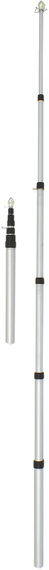 Caracteristicas: Telescoping flag pole extends from 18" to 6 feet tall in seconds Uses positive twist-locks in each section Collapses small enough to fit in most saddlebags The bottom section is 1-1/4" in diameter and slides snugly into all of Rivco's parade flag holders Made from lightweight and strong aircraft aluminum tubing Silver anodized finish, quick-release flag mounting clips, topped off with gold-tone finial Meant for parade use only, maximum speed of 25 mph.