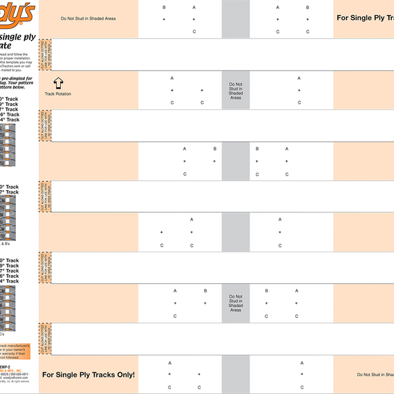 Caracteristicas: Stud patterns on Woody's® templates are CAD-designed to maintain track balance Follow the instructions and you will have the highest level of precision stud placement Printed on laminated heavy card stock
