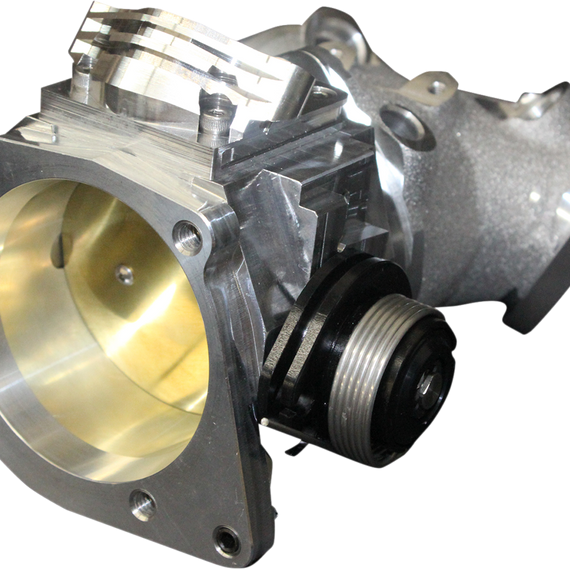 Caracteristicas: Brass throttle blade and shaft resist deflection, which helps maintain throttle position accuracy Completely replaces OEM throttle body and manifold; fully compatible with OEM components Specifically designed for larger cubic inch motors that require substantial airflow Equipped with a sealed double roller bearing for smooth throttle operation Feature a natural finish with split shaft design and stainless steel spring Large plenum design maximizes mid- and high-rpm power Fully machined and ported internally for unparalleled flow Made in the U.S.A. Size given for throttle bodies is measured at the butterfly.