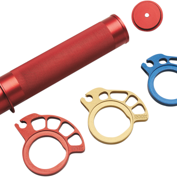 Caracteristicas: Give the rider better control, no matter what the ground condition Throttle cam system alters the ratio between hand-throttle rotation and opening of the carburetor, which improves the rider's control over the bike where it matters most, in the turns System includes a 6061 billet aluminum throttle tube with a knurled surface and three cams Delrin bushings in both ends of the tube eliminate all aluminum-to-aluminum contact to give the feeling of a ball-bearing tube without rust or freeze-up Each included cam is designed with track conditions in mind; one for perfect, one for intermediate and one for slippery or highly technical conditions One cam is stock diameter, the other two have different ramped shapes, which means the rider will turn their hand slightly farther to open the carburetor while in the zero to half-throttle range; the ramped shape ensures full throttle within a quarter turn Changing cams is easily achieved in less than a minute Throttle tube has removable end cap to allow installation of handguard