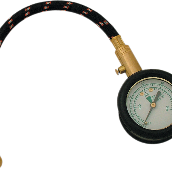 Caracteristicas: Round 2-1/2" white dial tire pressure gauge Includes purge valve; gauge holds reading until valve is activated Measures 16" long when deployed Metal housing covered by a rubber sleeve for easy gripping