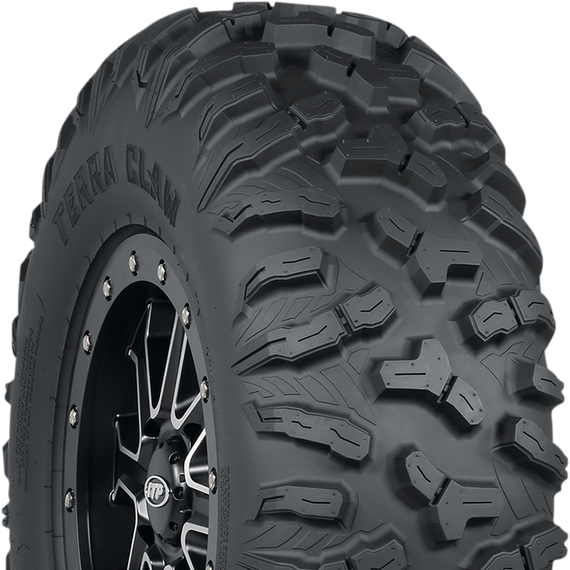 Caracteristicas: Unique alternating angled tread pattern provides enhanced traction in all terrains from hard pack, rocks, slick surfaces and soft terrain Round shoulder design provides excellent steering response and lateral stability Stepped tread blocks provide more biting edges in rutted conditions Reinforced belts provide increased traction and puncture resistance Additional siping added for wet traction and flex over rocky terrain V shape lug design provides increased traction and self-cleaning Center lug design provides both traction and a comfortable ride 8 ply radial construction